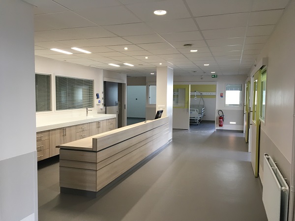 restructuration de l'aile C pour l'aménagement d'une unité de soins continus 6 lits et 4 lits d'addictologie, 2 phases de travaux, travaux en site occupé, phase 1 USC : 410 m2, phase 2 addictologie : 252 m2